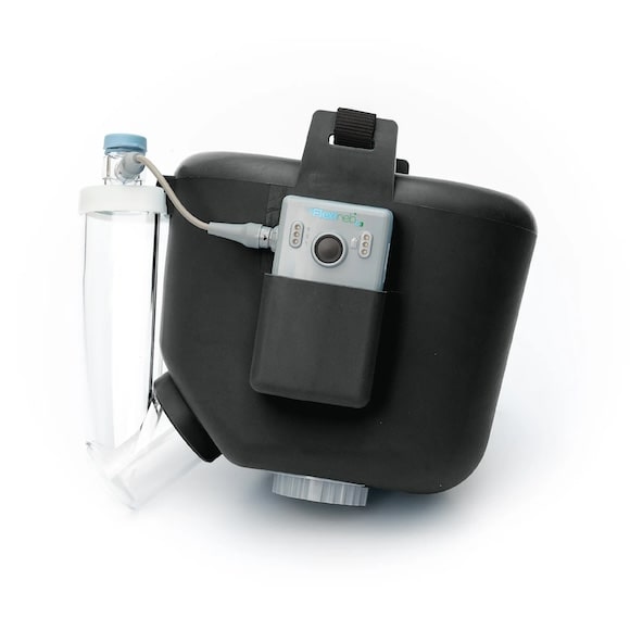 Pärast iga kasutamist on väga oluline ravimitopsi pesta, et vältida metallvõrgu saastumist või kahjustumist. Kaitske elektriühendust puhastamise ajal märjaks saamise eest kaasasoleva kaitsekorgiga. Ravimitopsi puhastamiseks avage pehme sinine kork ja tilgutage topsi 2–3 tilka õrnatoimelist nõudepesuvahendit ning täitke see destilleeritud veega. Sulgege pehme sinine kork ja raputage topsi umbes 15 sekundit ning pigistage pehmet korki, et vesi läbi võrgu suruda, samal ajal raputades. Avage kork ja loputage mõlemalt poolt destilleeritud veega. Raputage liigne vesi maha ja laske enne uuesti kasutamist õhu käes kuivada.